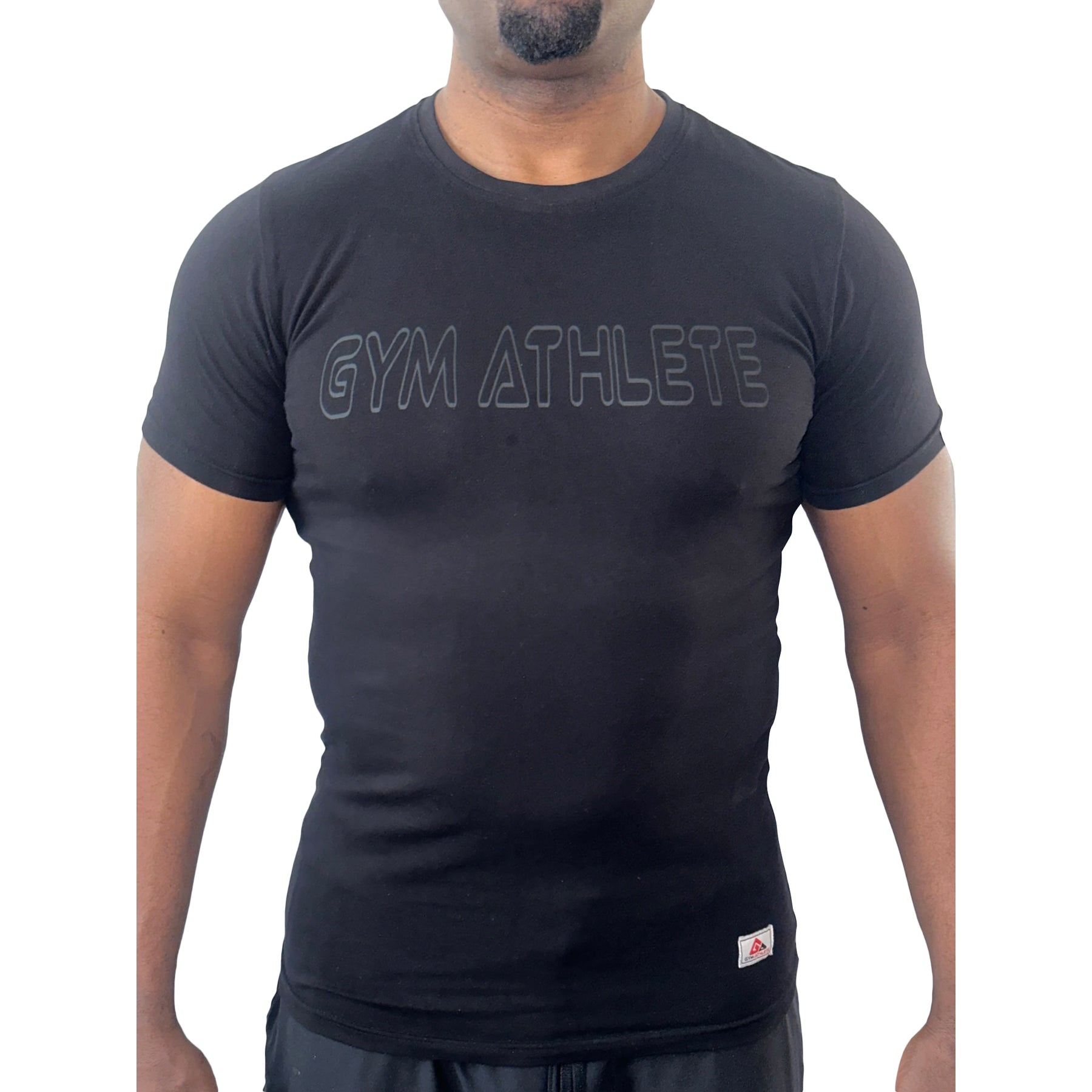 - Gym Athlete woven label on lower front left above hem, arm hem